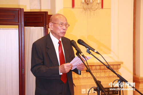 黃埔軍校同學(xué)會會長林上元在招待會上致辭。(中國臺灣網(wǎng) 齊曉靖 攝)