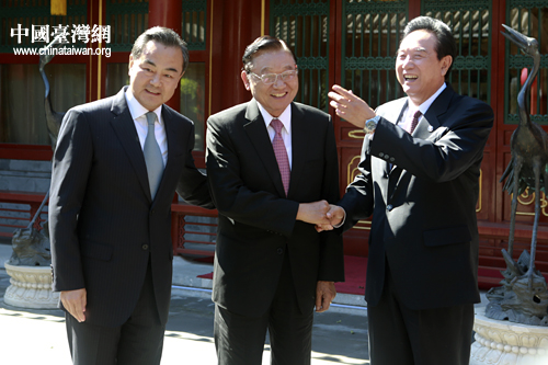 9月28日中午,中共中央臺辦、國務(wù)院臺辦主任王毅會見了臺灣海基會前董事長江丙坤。海協(xié)會會長陳云林在座。(中國臺灣網(wǎng) 陳佳慧 攝)