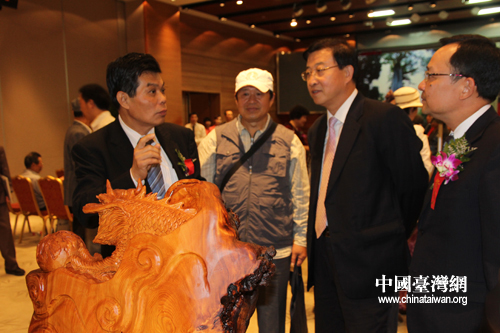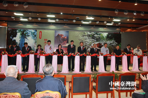 多位嘉賓為“臺灣阿里山檜木文化藝品展”剪彩。(中國臺灣網 馬迪 攝)