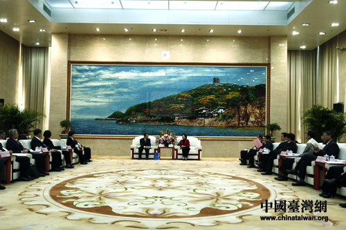 今天上午,安徽省副省長花建慧在馬鞍山會見了參加海峽兩岸電子信息博覽會的兩岸嘉賓。(中國臺灣網 王偉 攝)