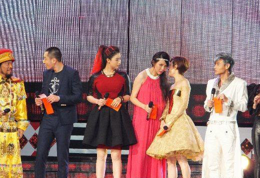 今年的壓軸大戲由“甄嬛幫”一手包辦,孫儷、蔣欣、李東學(xué)、蔡少芬4人除了輪番接唱,蔣欣還首度在臺(tái)灣演唱偶像張惠妹的《姐妹》,最后更與孫儷一起與扮演皇帝的張菲互動(dòng)。不過“皇后”蔡少芬、“華妃”蔣欣和“甄嬛”孫儷,在臺(tái)上絲毫不見劇中的煙硝味,蔣欣也沒和“死對(duì)頭”孫儷死掐,3個(gè)女生在臺(tái)上嘰嘰喳喳不停聊天,感情熱絡(luò)。