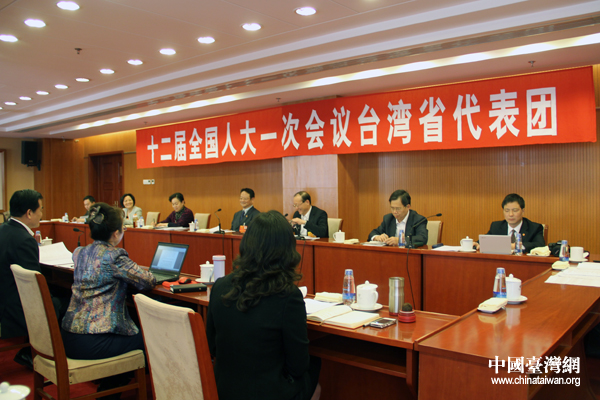 十二屆全國人大一次會議臺灣省代表團5日下午在駐地討論政府工作報告,并對前來參會的國家旅游局局長邵琪偉提出建議。(中國臺灣網(wǎng) 楊麗 攝)