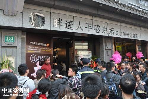 中國臺灣網3月8日上海消息 看準上海市場的活力與商機,越來越多的臺灣時尚健康美食正不斷登陸上海。7日下午,臺灣著名藝人小S現身上海南京路步行街世紀廣場,為老公許雅鈞投資的面包店——“胖達人面包”大陸首家門店開幕“造勢”,場面熱鬧非凡。