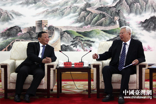 全國政協原副主席、中國和平統一促進會名譽會長羅豪才(右)在京會見了由曾福應(左)率領的菲律賓中國和平統一促進會訪問團。(中國臺灣網 郜利敏 攝)