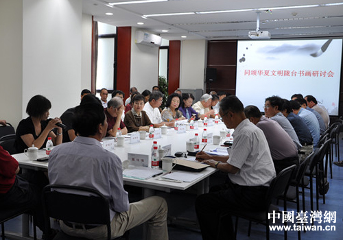 研討會(huì)上,隴臺(tái)書畫家各抒自己對(duì)書法的觀點(diǎn),以及書畫作為文化紐帶對(duì)大陸與臺(tái)灣之間的影響,并緊緊圍繞中國傳統(tǒng)文化、中國書畫的歷史輝煌和現(xiàn)今面臨的機(jī)遇與挑戰(zhàn)等問題,進(jìn)行了熱烈、深入的討論交流。大家一致表示,傳承中華文化、弘揚(yáng)華夏文明是兩岸學(xué)者責(zé)無旁貸的義務(wù)和責(zé)任。