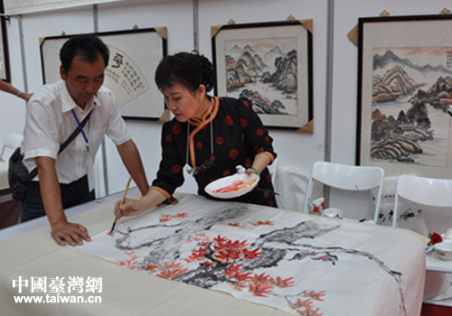 臺(tái)灣著名水墨畫家陳麗雀在隴臺(tái)書畫展現(xiàn)場作畫。(圖片來源:甘肅省臺(tái)辦)
