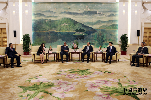 全國政協副主席、國家民委主任王正偉,中共中央臺辦、國務院臺辦主任張志軍等參加會見。(文字來源:中新社 記者 陳小愿)