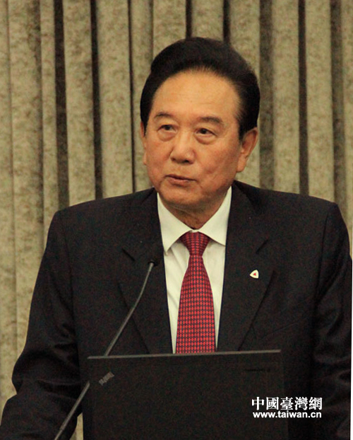 臺(tái)灣;鶗(huì)前董事長江丙坤在“兩岸產(chǎn)經(jīng)合作與創(chuàng)新發(fā)展論壇”上致辭。(中國臺(tái)灣網(wǎng) 扶海濤 攝)
