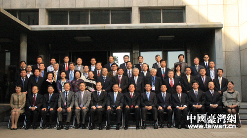 參加“兩岸產(chǎn)經(jīng)合作與創(chuàng)新發(fā)展論壇”的兩岸專家學(xué)者合影留念。(中國臺(tái)灣網(wǎng) 扶海濤 攝)