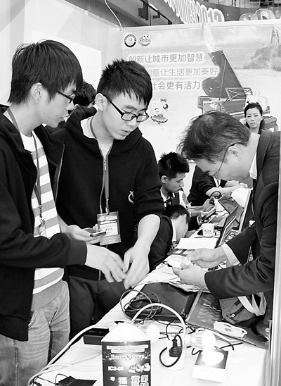 福建省軟件行業協會率“第三屆海峽兩岸信息服務創新大賽暨福建省第七屆計算機軟件設計大賽”兩岸交流組選手,9日在臺北與臺灣院校的優秀人才進行了交流競賽。今年的大賽吸引了臺灣地區共30多所院校的近百支參賽隊伍報名。圖為交流現場。