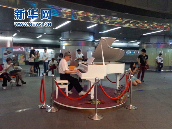捷運站里的老爺爺在彈鋼琴悠閑自在