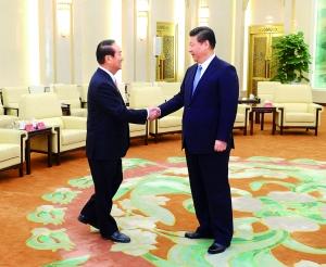 中共中央總書記習近平7日上午在人民大會堂會見親民黨主席宋楚瑜一行。習近平強調,兩岸關系和平發展是兩岸同胞順應歷史潮流作出的共同選擇。只要我們都從“兩岸一家親”的理念出發,將心比心,以誠相待,就沒有什么心結不能化解,沒有什么困難不能克服。