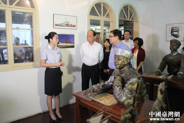 24日下午,海協會會長陳德銘夫婦與海基會董事長林中森夫婦一起在福州馬尾參觀了中國船政文化博物館,圖為一行人參觀船政學堂。(中國臺灣網 張潔 攝)