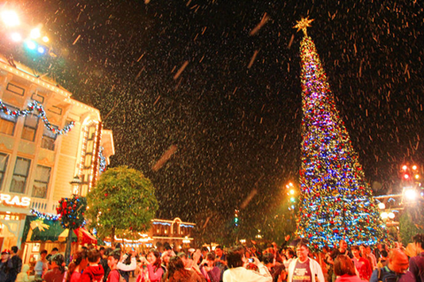 香港迪士尼曾經人工造雪來吸引游客。轉載自四面光博客。攝于2012年。