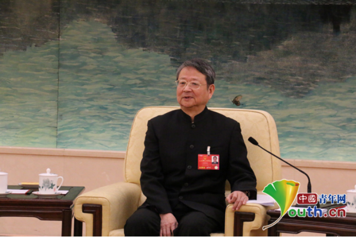 臺(tái)灣代表團(tuán)團(tuán)長(zhǎng)汪毅夫回答中國(guó)青年網(wǎng)提問。中國(guó)青年網(wǎng)記者郭蕾 攝