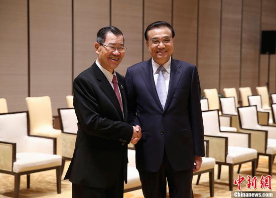 3月24日下午,國務院總理李克強在海南博鰲會見兩岸共同市場基金會榮譽董事長蕭萬長一行。中新社記者 劉震 攝