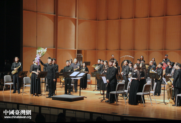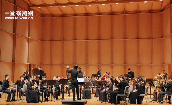 首都師范大學(xué)管樂團(tuán)向臺北觀眾致意。(中國臺灣網(wǎng) 王思羽 攝)
