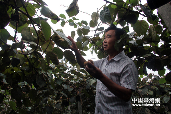 菖蒲塘村村民在獼猴桃地里檢查果木。(中國臺灣網 朱煉 攝)
