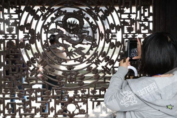 下了碉樓,大家又分散開來到院落中,尋找歷史和歲月留下的痕跡。在云南網(wǎng)記者陳創(chuàng)業(yè)的相機(jī)里,無論是門前沉默的石雕還是庭中滄桑的窗欞,都仿佛有了生命般。他在朋友圈說,會(huì)龍莊,可以稱得上遠(yuǎn)山如黛,可以稱得上云霧繚繞。中軸格局、墨瓦青草、雨籠雕塑、龍紋空照,多少故事煙雨中......(記者 黃宇)