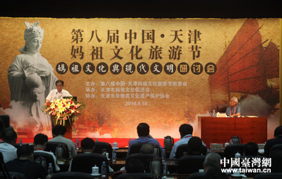當(dāng)天下午舉行的媽祖文化與現(xiàn)代文明研討會(huì)匯聚兩岸20余位專家學(xué)者共同參與,并就基于“一帶一路”視角的天津旅游業(yè)發(fā)展研究、傳承中華傳統(tǒng)文化把握獨(dú)特戰(zhàn)略資源、媽祖信仰與東南亞華人社會(huì)等課題展開(kāi)深入的研討與交流。與會(huì)嘉賓表示,媽祖文化是中華民族的寶貴精神財(cái)富和優(yōu)秀文化遺產(chǎn),兩岸同文同宗,更有共同的信仰,最典型的例子就是兩岸民眾共同的媽祖信仰。只有深刻領(lǐng)會(huì)到中華優(yōu)秀傳統(tǒng)文化的重要性,才能切實(shí)擔(dān)負(fù)起保護(hù)中華民族文化遺產(chǎn)的職責(zé)。