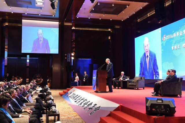 11月6日,峰會大陸方面理事長曾培炎在開幕式上發表主旨演講。(新華社記者 朱祥 攝)