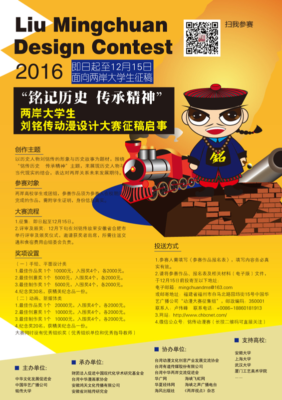 根據“兩岸大學生劉銘傳動漫設計大賽”評審計劃,本次征集活動截止到12月15日,共收到兩岸40余所高校600多名大學生創作的劉銘傳動漫作品370余件。經評審委員會7位專家評委初次評審,60件動漫作品獲得入圍提名資格。(查看入圍作品請點擊:動畫新媒體類、手繪平面設計類)