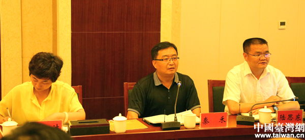 8月3日下午,北京市臺聯(lián)與在京臺商“一帶一路”參訪團(tuán)與張掖市、山丹縣相關(guān)部門負(fù)責(zé)人座談交流。(中國臺灣網(wǎng) 王怡然 攝)