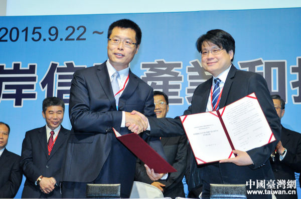 2015年9月,工信部副部長懷進鵬見證聯發科技與工信部軟件與集成電路促進中心簽署戰略合作協議副本。(中國臺灣網發 聯發科技供圖)