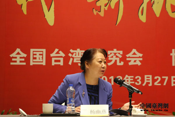 全國臺灣研究會常務副秘書長楊幽燕主持論壇。(中國臺灣網 李杰 攝)