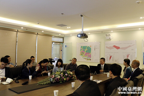 4月17日,“走進國家中心城市——鄭州”兩岸媒體聯合采訪團的十余位記者走進鄭州市臺商大廈,一同采訪了鄭州市臺協常務副會長詹麗珠、臺灣宏信集團董事長黃錦勛和河南金匯農業科技有限公司總經理王正柱等鄭州臺商。