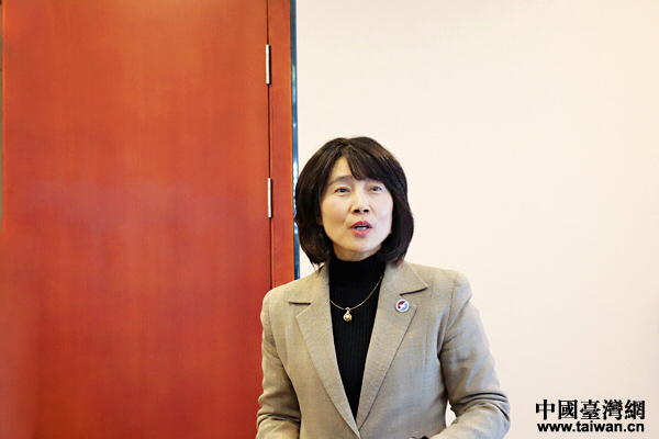 鄭州市臺協常務副會長詹麗珠接受記者采訪。(中國臺灣網 張亞靜 攝)