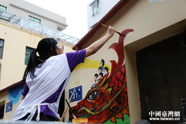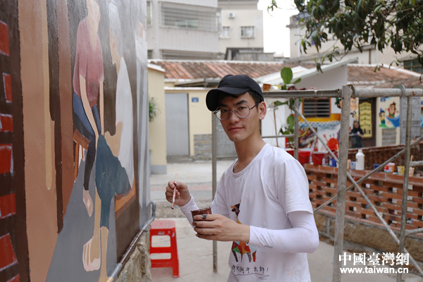 中國(guó)臺(tái)灣網(wǎng)6月6日廈門訊 (記者 袁楚)作為第十屆海峽論壇交流活動(dòng)之一,“打破界限”兩岸創(chuàng)意涂鴉大賽作品決賽階段正在廈門市集美區(qū)如火如荼地進(jìn)行。大賽以極具個(gè)性的涂鴉為活動(dòng)內(nèi)容,通過抽簽的方式將兩岸的參賽選手交叉分組,合作完成決賽作品,讓兩岸藝術(shù)家在創(chuàng)作中深入合作互動(dòng),同時(shí)促進(jìn)兩岸青年交流。來自兩岸的青年藝術(shù)家們不懼夏日炎熱,潛心創(chuàng)作,目前涂鴉作品已初具規(guī)模。