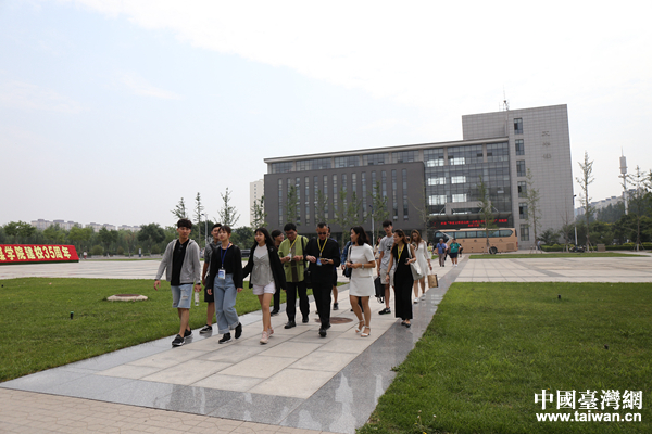 參訪交流團行走在山西傳媒學院校園。(中國臺灣網 袁楚 攝)