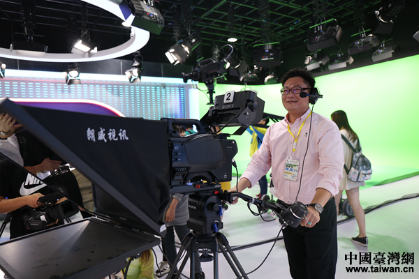 臺灣大學生在山西傳媒學院視頻演播室進行體驗。(中國臺灣網 袁楚 攝)