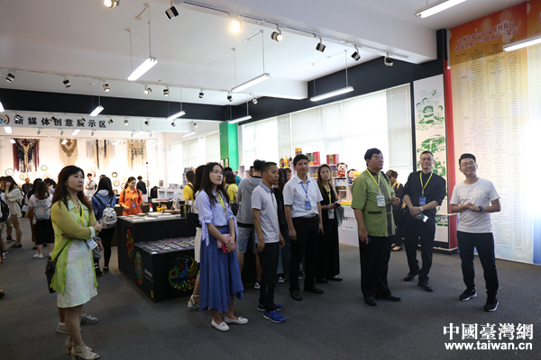 參訪交流團聽取《一人一品》作品展講解。(中國臺灣網 袁楚 攝)