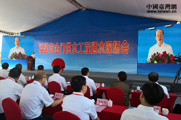 福建向金門供水工程通水現場會在福建晉江舉行,工程實現正式通水。(福建省臺辦 張寧 攝)