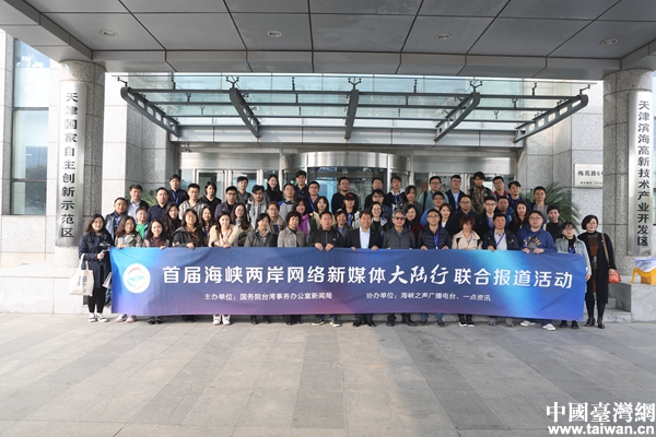 兩岸新媒體人在天津?yàn)I海高新技術(shù)產(chǎn)業(yè)開發(fā)區(qū)管委會(huì)合影留念。(中國臺(tái)灣網(wǎng) 陳佳慧 攝)