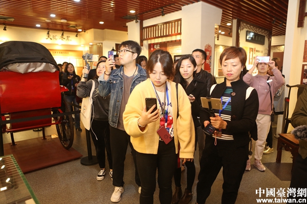 兩岸新媒體人參訪位于民園廣場(chǎng)的天津和平區(qū)非物質(zhì)文化遺產(chǎn)展覽博物館。(中國臺(tái)灣網(wǎng) 陳佳慧 攝)