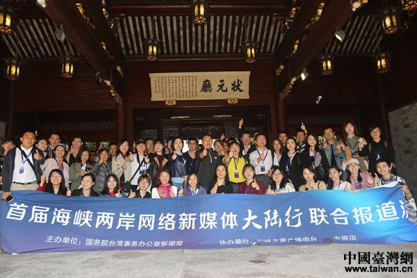 10月29日,首屆海峽兩岸網絡新媒體大陸行聯合報道團在寧波天一閣狀元廳前合影。(中國臺灣網 陳佳慧 攝)