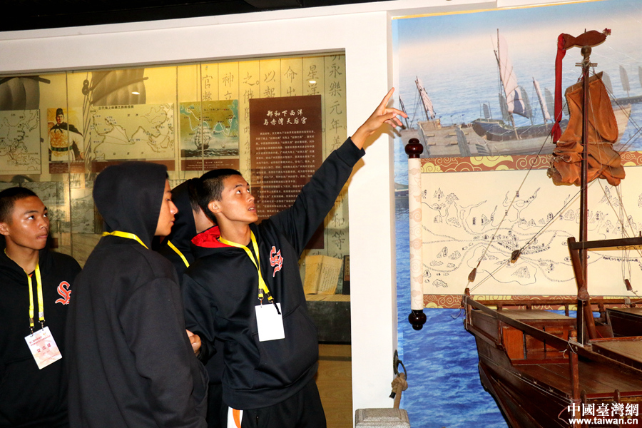 臺灣棒球選手參觀深圳赤灣天后博物館。(中國臺灣網 尹賽楠 攝)