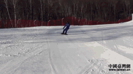 云頂滑雪場教練隊隊長盧永帥為記者展示滑雪技巧。(中國臺灣網 賈若瀾 攝)