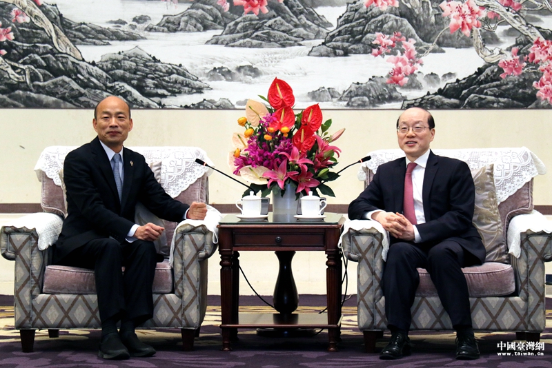 中共中央臺辦、國務院臺辦主任劉結一在深圳會見了高雄市長韓國瑜率領的高雄市參訪團一行。(中國臺灣網 尹賽楠 攝)