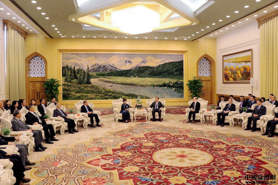13日下午,中共中央政治局常委、全國政協主席汪洋在京會見了中國國民黨前主席、中華青雁和平教育基金會董事長洪秀柱率領的臺灣各界人士代表團。(中國臺灣網 尹賽楠 攝)