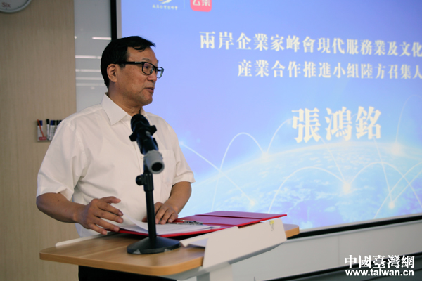 兩岸企業(yè)家峰會(huì)現(xiàn)代服務(wù)業(yè)及文創(chuàng)產(chǎn)業(yè)合作推進(jìn)小組陸方召集人張鴻銘在啟動(dòng)儀式上致辭。(中國(guó)臺(tái)灣網(wǎng) 王亮 攝)