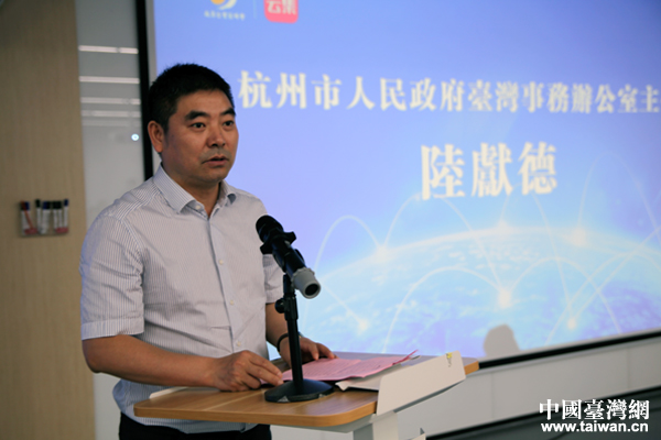 杭州市臺(tái)辦主任陸獻(xiàn)德在啟動(dòng)儀式上致辭。(中國(guó)臺(tái)灣網(wǎng) 王亮 攝)