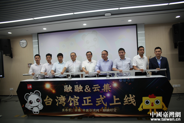兩岸嘉賓共同開啟“融融&云集臺(tái)灣館”。(中國(guó)臺(tái)灣網(wǎng) 王亮 攝)