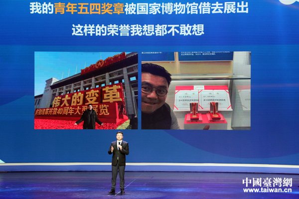 8月7日下午,2019海峽青年(福州)峰會在福州海峽文化藝術(shù)中心舉行。首批獲得“福建青年五四獎?wù)隆钡呐_青范姜鋒分享自己在大陸就業(yè)創(chuàng)業(yè)經(jīng)歷。(中國臺灣網(wǎng) 王怡然 攝)