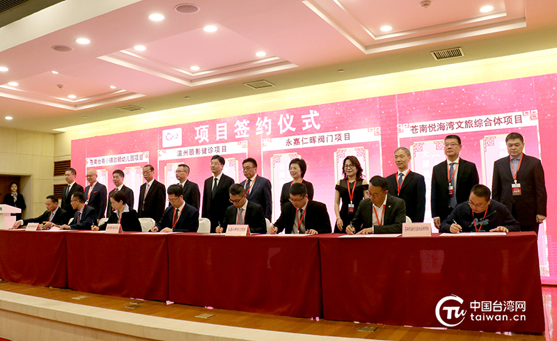 論壇舉行了兩岸投資合作項(xiàng)目簽約儀式。據(jù)悉,今年浙江·臺灣合作周期間,達(dá)成臺商在溫投資合作項(xiàng)目簽約共5個,涉及健康養(yǎng)老、文化旅游、教育等行業(yè)和領(lǐng)域,總投資額達(dá)到5.15億美元。(中國臺灣網(wǎng) 普燕 攝)