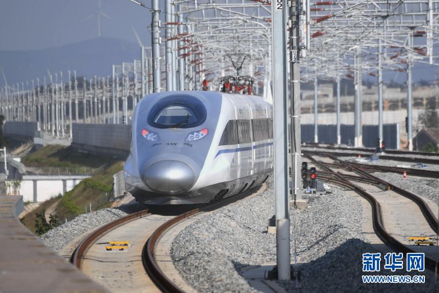 12月26日,G5322次列車駛出福平鐵路平潭站。新華社記者 林善傳 攝