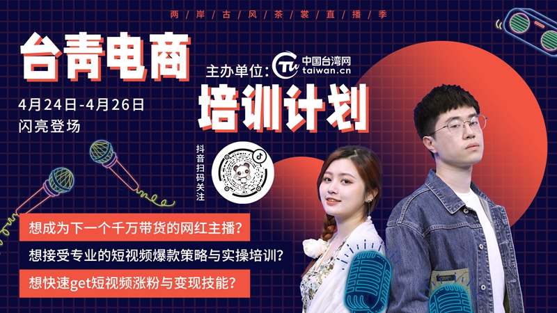 中國臺灣網4月24日北京訊 (記者 張亞靜)“品香茗、秀漢服、嘗美食”,4月24至28日,中國臺灣網舉辦海峽兩岸古風茶裳直播季活動。為了讓臺灣青年更好地了解大陸電商發展情況,本次活動還專門安排了電商培訓課程。